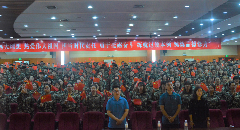 “从今天开始,我愿以诚待人,以孝心待父母,以爱心待社会,以忠心待国家···”全体师生面对国旗宣誓、告白祖国,在庄严肃穆的气氛下诉说着诚挚的誓言。宣誓结束后,全场师生起立合唱《我和我的祖国》、《保卫黄河》等爱国歌曲,表达对祖国的无限热爱和崇敬之情。