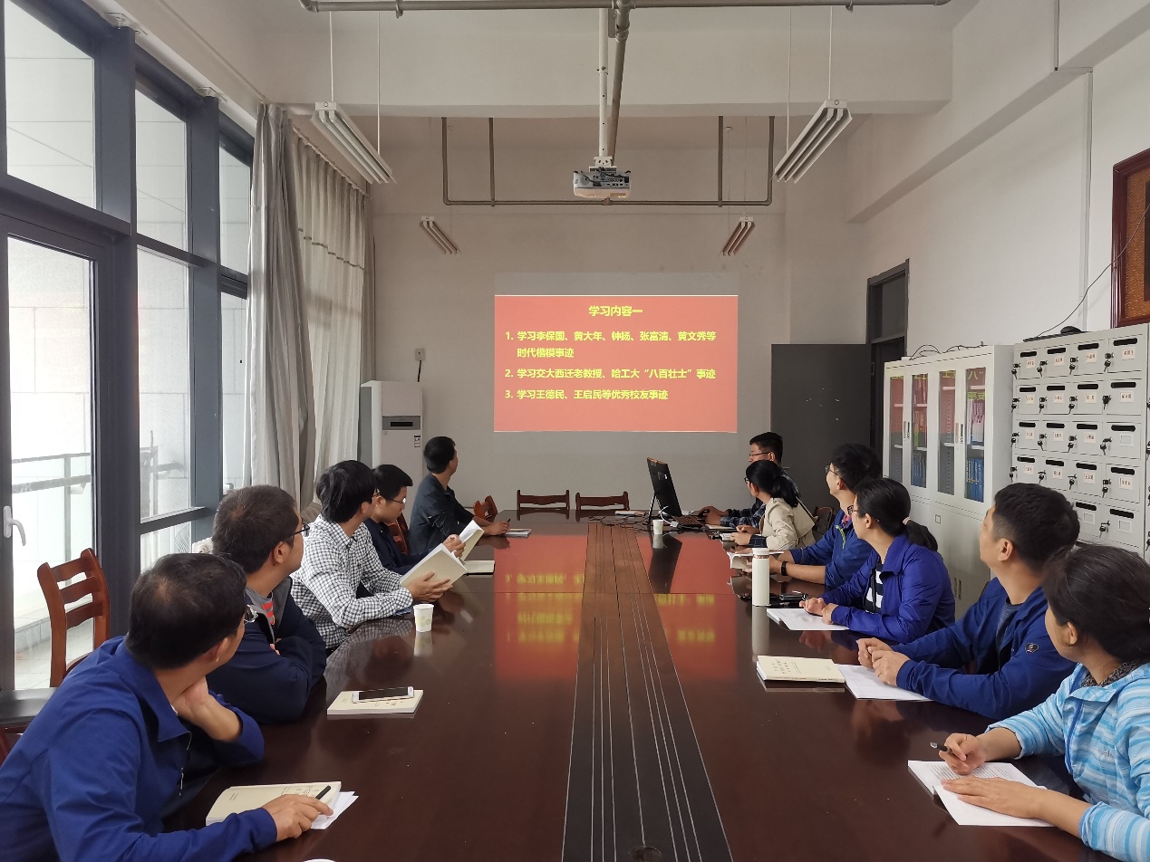 会议伊始,刘兆增以视频的形式带领大家逐个学习了李保国、黄大年、钟扬、张富清、黄文秀等时代楷模,交大西迁老教授、哈工大“八百壮士”以及王德民、王启民等优秀员工的先进事迹。这些榜样的先进事迹集中体现了优秀知识分子的奉献精神和崇高品德,深刻地展现了一代又一代人的奋斗和无私奉献精神。当前为实现中华民族伟大复兴的中国梦,需要新时代的共产党员更进一步发扬奋斗奉献、笃志报国精神,不忘初心、牢记使命,胸怀祖国,在祖国的各行各业努力拼搏,做新时代的奋斗者。