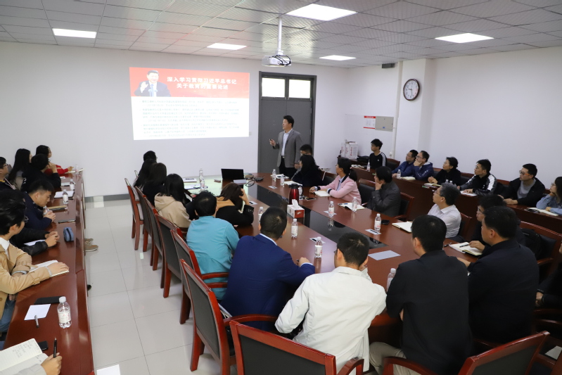 吴明铂首先带领与会党员重温“中国共产党人的初心和使命,就是为中国人民谋幸福,为中华民族谋复兴”,梳理了十八大以来总书记关于教育工作的重要论述。结合学院成立情况,向与会党员从学院概况、面临的挑战和问题、目标规划、重点举措等方面讲述了学院发展方向和规划。强调了团队建设在青年教师成长中的重要作用。结合一批优秀青年教师的成长经历,鼓励年轻教师要积极主动地加入团队,要将个人的成长与团队的发展紧密结合起来;既要重视教学,又要加强科研,处理好教学与科研的关系;面对资金不足等困难,要有主动出击的勇气和百折不回的毅力;要抓住发展机遇,破解发展难题;要依靠团队的力量和集体的智慧助力个人的发展,要以总书记提出的“政治素质过硬、业务能力精湛、育人水平高超的专家型教师”为目标,以“真才实学服务人民,以创新创造贡献国家”为己任。