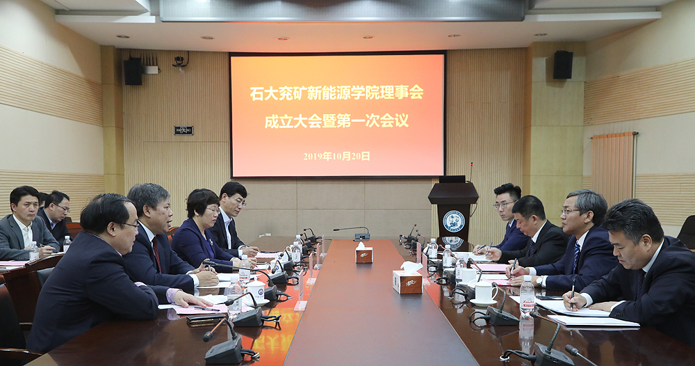 揭牌仪式后,石大兖矿英国威廉希尔理事会成立大会暨第一次会议举行。会议宣布郝芳担任理事长,岳宝德和威廉希尔副董事长姚军担任副理事长。理事会作为重大共建事项的决策机构,负责对学院进行宏观管理和领导,负责决策发展战略、发展领域、资金投向、重大项目、学院班子成员聘任等重大问题。
