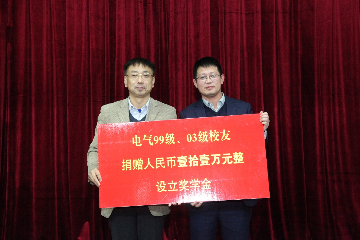 冯宝鹏接受电气99级、03级员工捐赠 杨安摄影