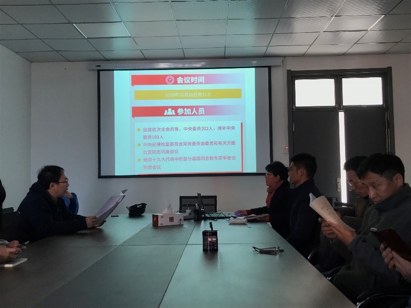 全体党员在张克舫书记的带领下,认真系统学习了十九届四中全会精神,学习认为,中国特色社会主义制度是党和人民在长期实践探索中形成的科学制度体系,我国国家治理一切工作和活动都依照中国特色社会主义制度展开,我国国家治理体系和治理能力是中国特色社会主义制度及其执行能力的集中体现。实践证明,中国特色社会主义制度和国家治理体系是以马克思主义为指导、植根中国大地、具有深厚中华文化根基、深得人民拥护的制度和治理体系,是具有强大生命力和巨大优越性的制度和治理体系,是能够持续推动拥有近十四亿人口大国进步和发展、确保拥有五千多年文明史的中华民族实现“两个一百年”奋斗目标进而实现伟大复兴的制度和治理体系。