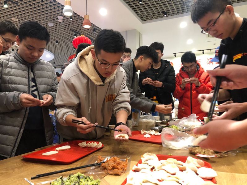 活动伊始,支部成员在组织委员的带领下聆听专业师傅的讲解,随后团支书胡小康和班长张泉将全班分为四个小组,每个小组六到八人支部成员在专业师傅的指导下,设计出了自己的具有独特口味与形状的饺子。包完饺子后,胡小康跟着厨师走进厨房等待饺子的出锅,支部成员在班长的带领下发言,讨论自己在包饺子过程中的经验与心得。“大家在12月记得的永远是那个从外国传进来的圣诞节和平安夜,又有谁还记得我们的传统节日冬至呢?又或许我们已经习惯冬至日和亲人们围坐在一起吃饭而不是此时陪伴在你身边的同学。现在,让我们在紧张的期末考试氛围中轻松一下,坐下来和身边的同学享受与彼此在一起的时光!”在等待饺子的过程中班长张泉这样说道。活动最后支部成员围成一桌合影留念,彼此交流着自己在活动过程中的经历,提出了自己对于团日活动和传统节日联系起来的看法。