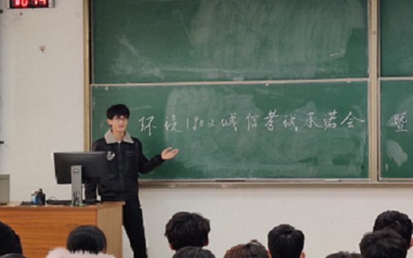 期末考试临近,为督促员工们学习,使用正确高效的学习方法进行复习,明确考试相关纪律,并对本学期之前的内容活动进行总结。环保设备工程专业1902班于12月23日在南教119教室开展诚信考试承诺会暨期末动员大会。环设1902全体员工到场,班主任曲燕出席本次会议,