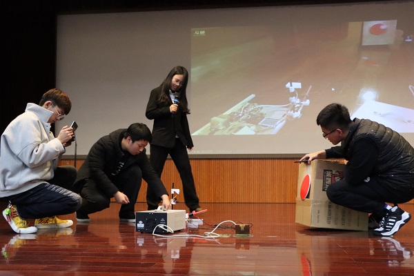 本次展示会分为两个部分进行展开。首先,此次展示会采取“创新达人秀”的模式,由各参赛队伍依次进行科技创新实践成果答辩及进行成果展示。答辩限时四分钟,各参赛队伍答辩人通过对团队成员介绍,作品设计背景、设计原理、功能演示等方面进行成果展示。随后,比赛评委与大众评审参考各参赛作品的综合表现,对各参赛队伍依次打分,对获奖作品进行颁奖并合影留念。此次比赛由来自电气专业的四十八队伍参加,基于《微特电机》课程设计,制作出基于微特电机原理的比赛作品并参与答辩,比赛综合专业评委打分与在场参赛选手打分,最终决出一等奖一组,二等奖两组,三等奖三组。此外,本次展示会另设抽奖环节,由郭杰等三个嘉宾依次抽取标记球,抽选一名员工获得精美礼品一份。董磊在谈到此次展示会的意义时讲到:“此次展示会展现了电气学子的风采,无论从答辩人的仪容仪表,还是参赛作品的呈现效果,都得到了老师们的肯定。”