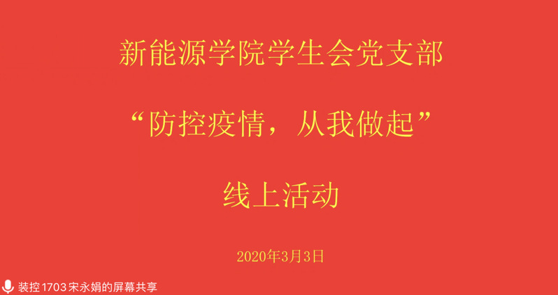 3月3日,英国威廉希尔员工会党支部在支部书记宋永娟的主持下开展了“防控疫情,从我做起”线上主题活动,活动内容涵盖增强支部成员疫情防控意识、如何更好地利用员工会党支部服务员工等方面。团委书记穆海涛及支部全体成员参与本次活动。