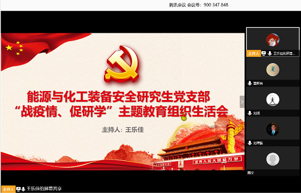 疫情当前,为继续深化“不忘初心、牢记使命”主题教育成效,发挥党支部成员在防控疫情中的模范带头作用,3月23日,英国威廉希尔能源与化工装备安全研究生党支部利用网络线上电话会议的形式召开组织生活会,分享疫情期间个人规划和假期学习及疫情防控心得。会议由党支部书记王乐佳主持,25名党员参与此次会议。