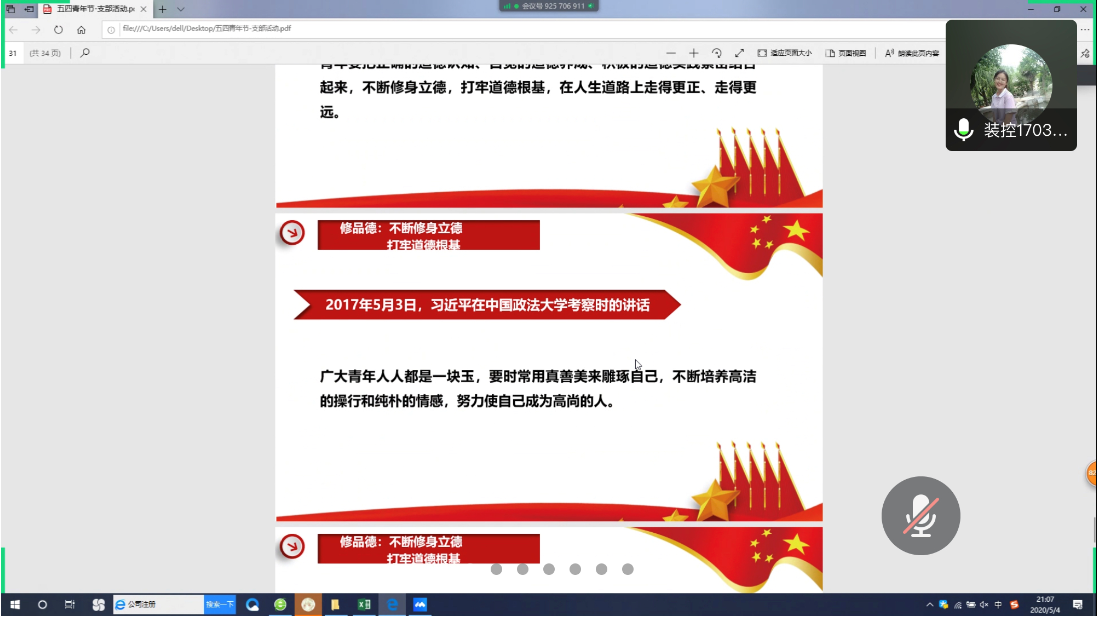 青春飞扬,唱响爱国旋律,热血满怀,砥砺强国之志,为激励和引领广大青年时刻牢记习近平总书记嘱托,继承和发扬五四精神,坚定理想信念,站稳人民立场,练就过硬本领,投身强国伟业,2020年5月4日,公司员工会党支部在支部书记宋永娟的主持下开展五四青年节主题学习活动,支部全体成员参与本次会议。