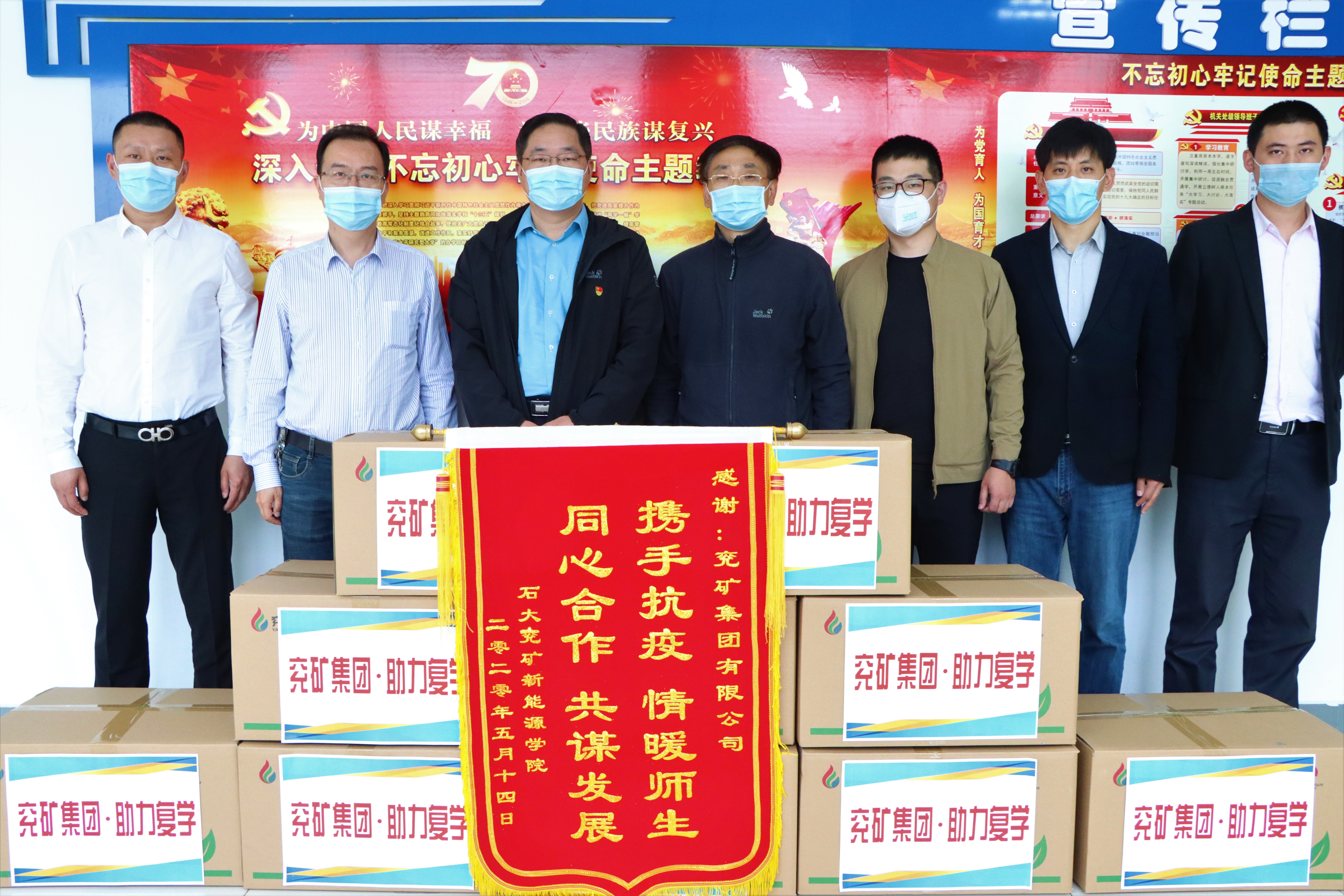 5月14日,兖矿集团有限公司相关部门一行4人来到公司,代表兖矿集团有限公司向公司捐赠了20000支一次性防护口罩,助力公司复学工作。公司党委书记冯宝鹏,学院办公室及员工工作有关人员代表学院接受了捐赠。