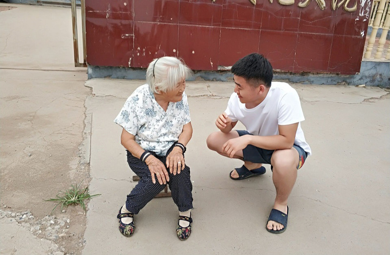 图为调研队员采访钟大妈的家庭生活杨博文摄