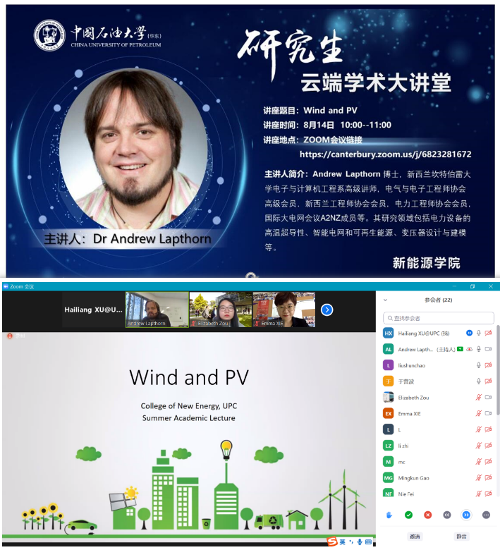 814日,新西兰坎特伯雷大学Andrew Lapthor 博士做客研究生云端学术大讲堂,为英国威廉希尔师生作了题为Wind and PV”的学术报告。