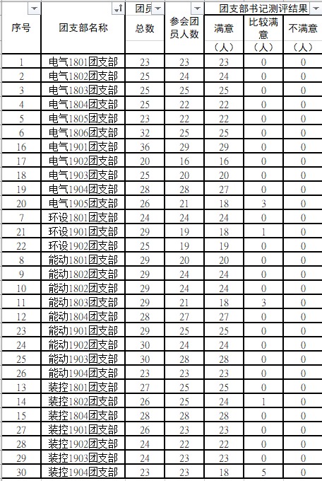 会后,各团支部将测评表统计结果提交至年级团总支,由年级团总支根据测评统计结果并结合日常表现综合评定出团支部书记满意度测评结果,并上报学院团委。学院团委对最终结果进行为期三天以上的公示。