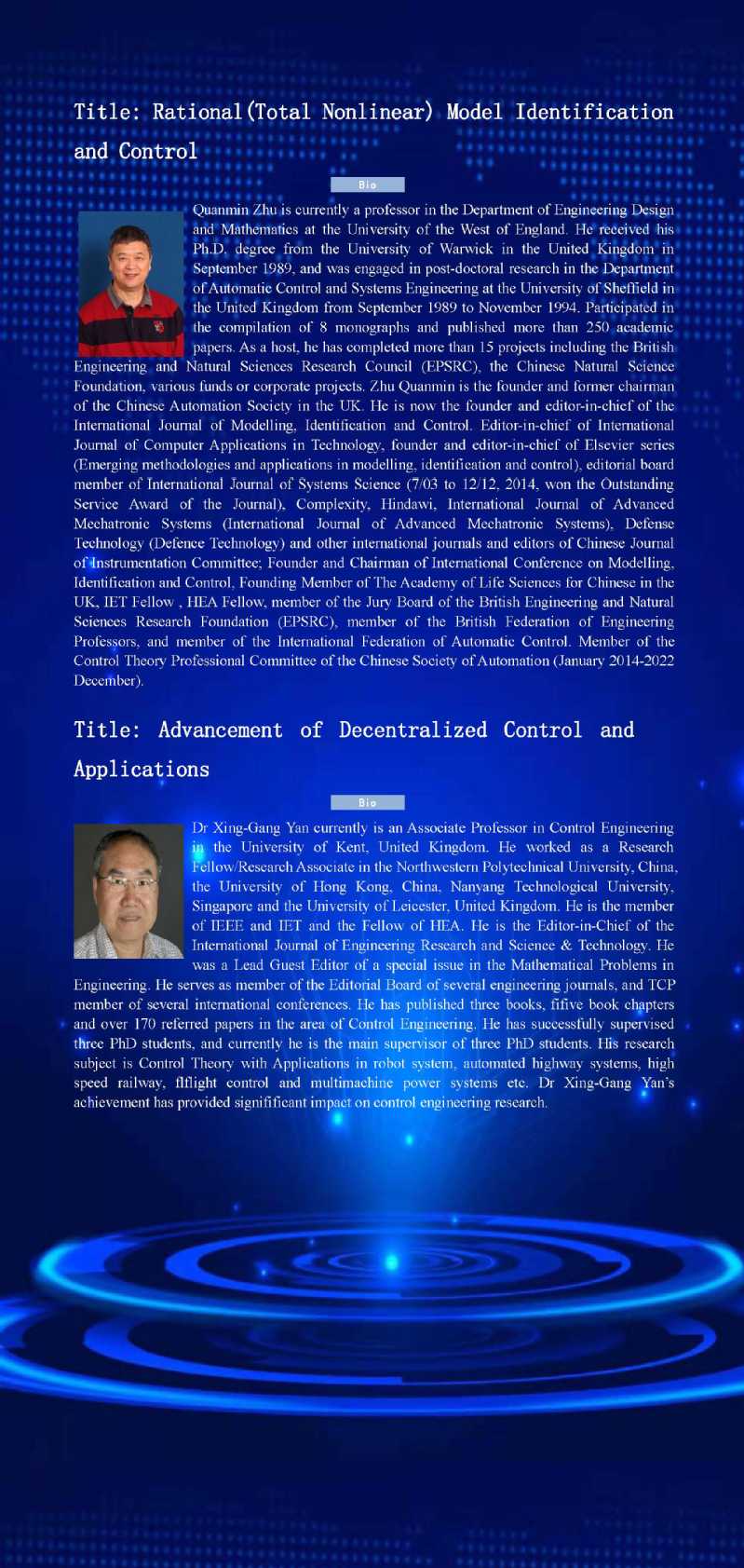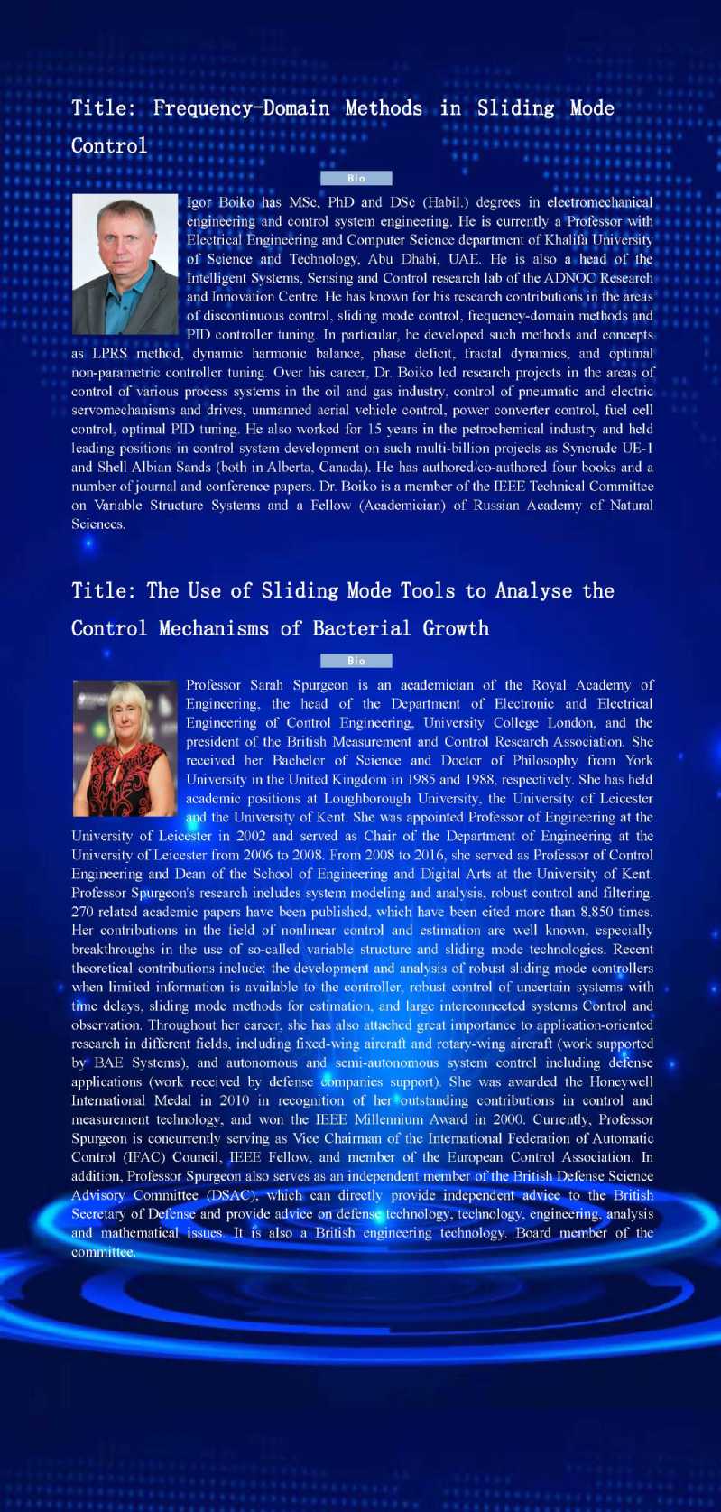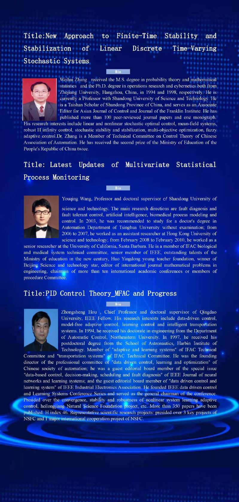 大会将邀请在滑模控制,随机控制等方面取得重大进展的多位专家学者作主题报告。诚挚邀请全国各高校、科研院(所)以及企事业单位的专家学者、研究生参加会议。论坛日程安排如下:
