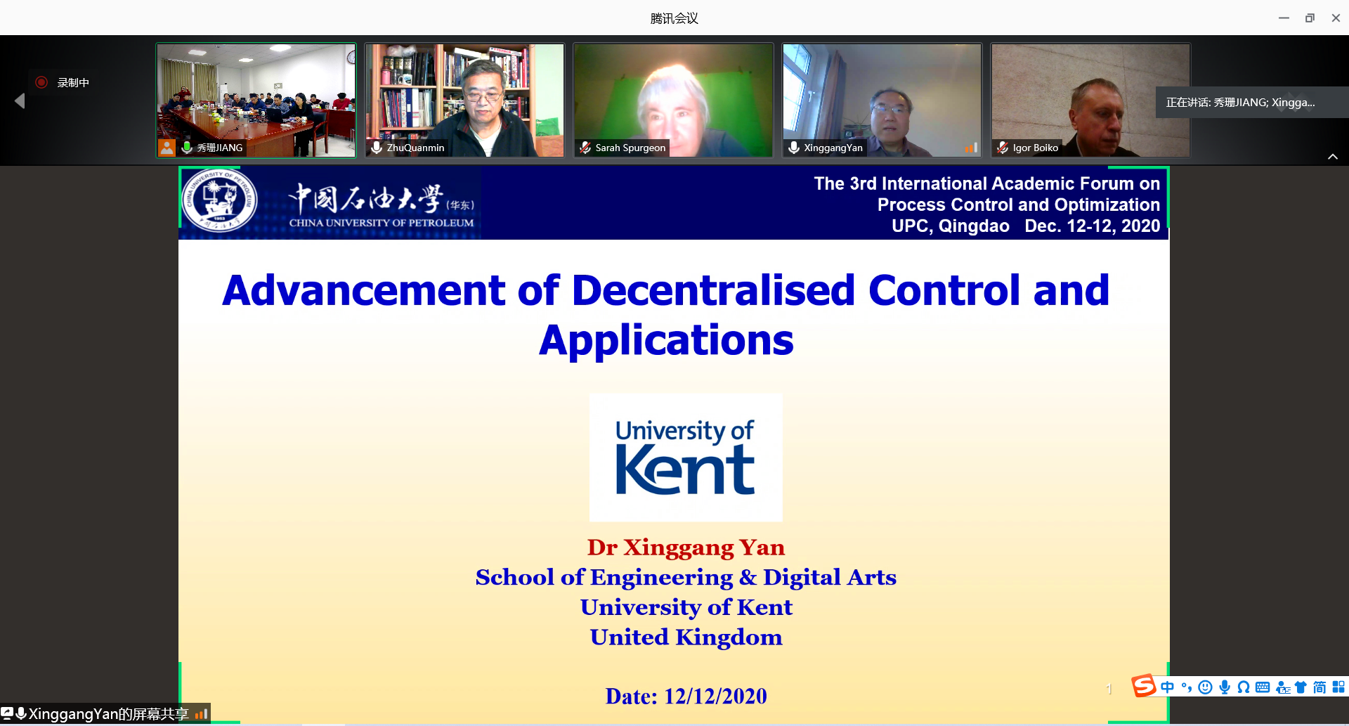 2020年12月12日至13日,第三届国际过程控制与优化学术前沿论坛(线上线下会议)在王宽诚教育基金会资助下成功举办。会议由英国威廉希尔主办,来自国内外知名专家学者针对大规模复杂过程中所存在的基础理论控制问题,探讨现有的分布式滑模控制、鲁棒控制以及大规模复杂系统的动态优化等理论。