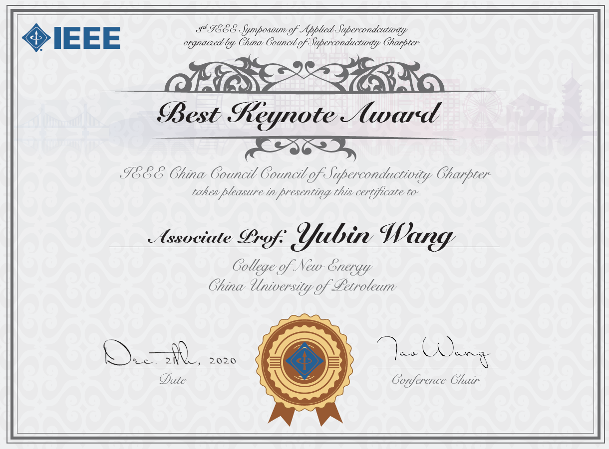 12月20-21日,第三届应⽤超导学术年会在浙江省湖州市举行。会议围绕医用电磁装备用、电机/风机用、储能与聚变用超导磁体及其建模分析新方法与新理论展开研讨。公司王玉彬副教授应邀参会并作了题为“定子励磁静态密封高温超导电机研究进展”的主题报告,取得了良好效果与反馈,荣获最佳主题报告奖。