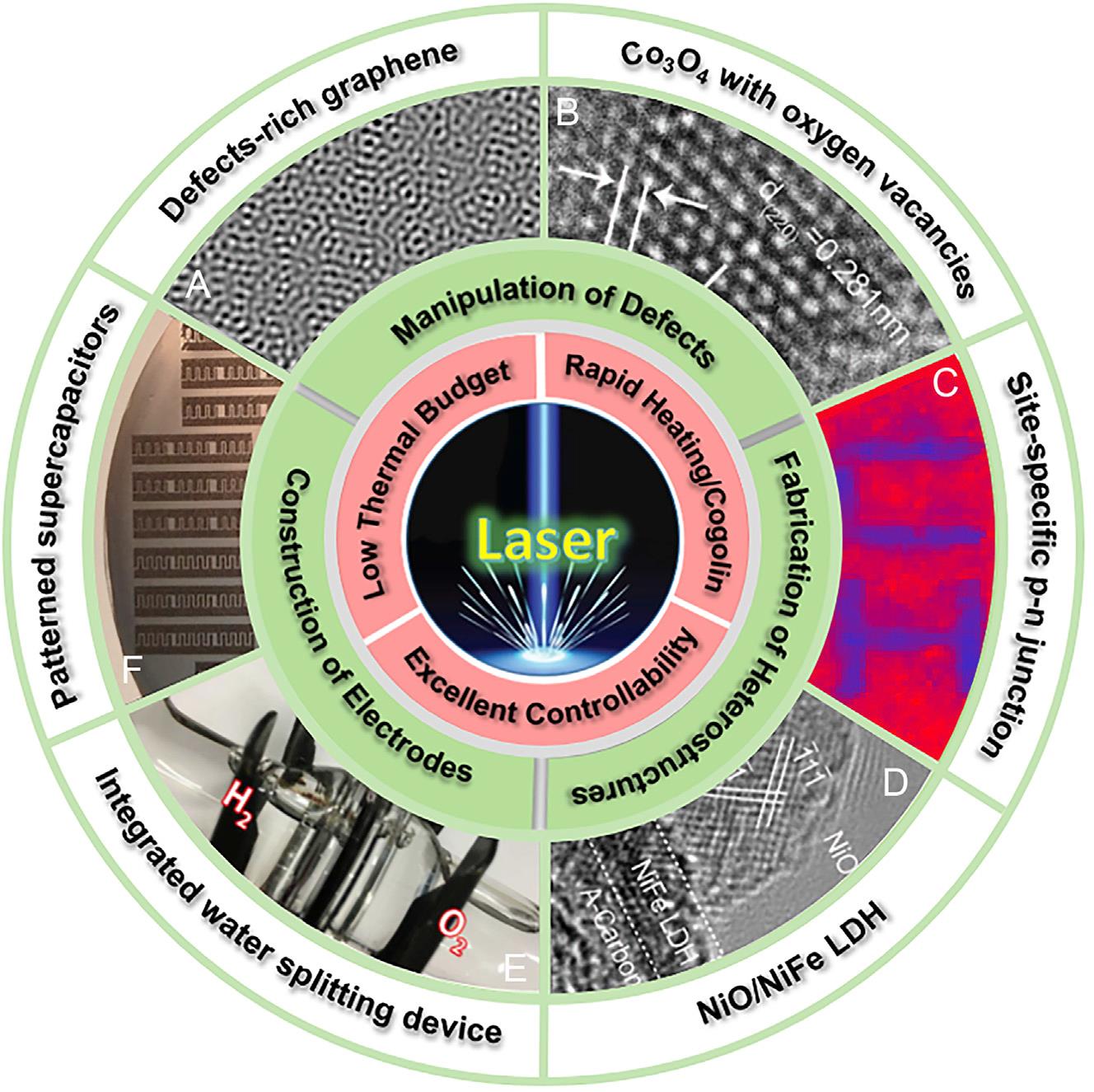 电极材料不同尺度的结构特征对其电化学性能均具有显著影响,如何实现在多个尺度下对电极材料进行可控调节是该领域关注的热点。由于可实现在低功耗下快速、精准以及高度可控的材料加工,激光辐照技术近年来被广泛用以制备和调控电极材料,并在缺陷可控引入、异质结构精准构筑以及一体化电极原位制备等方面展现出独特的优势。文章总结了激光辐照技术在电极材料制备及改性方面的最新进展,并特别强调其在缺陷、异质结以及一体化电极构筑等方面的独特优势。在对激光辐照技术原理进行简单介绍后,作者分析了激光辐照参数对材料结构的影响规律并总结了利用激光辅助技术调控纳米碳、金属以及化合物纳米晶等电极材料的研究进展和应用特性。最后,作者详细分析了该领域所面临的挑战,并对未来的发展趋势进行了展望。
