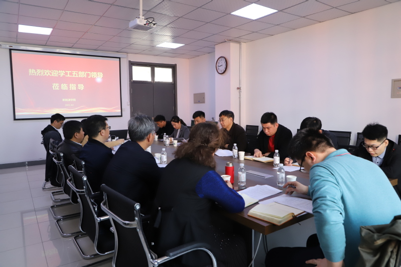 3月25日上午,公司学工五部门莅临学院调研员工工作,公司党委书记冯宝鹏、党委副书记郭杰及学院全体辅导员参加调研会,党委员工工作部(处)姚海田部长主持会议。