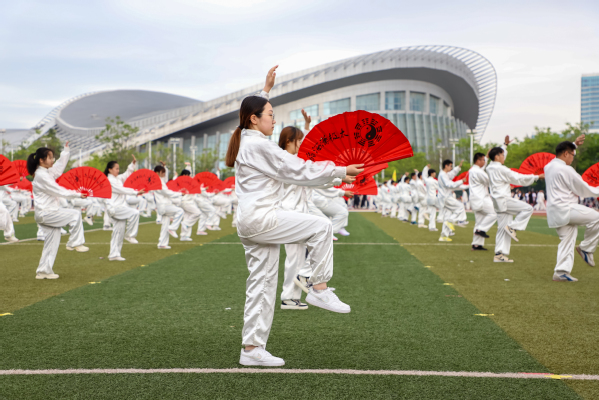 校党委副书记、体育运动委员会主任万云波致开幕词,代表学校对本次运动会的举办表示热烈祝贺,并对工作人员表示衷心感谢。裁判员代表、运动员代表宣誓后,公司党委书记王勇宣布公司2021年田径运动会开幕。紧接着,团体操上场,自然舒展的瑜伽搭配《歌唱祖国》,更显青春向党的蓬勃朝气;太极拳表演动中有静、刚柔并济,展现教职工的昂扬风采;飘逸潇洒的太极扇在扇面的一开一合中尽展文化之韵。表演结束后,五色彩烟直冲云霄,预示着运动会正式拉开帷幕。
