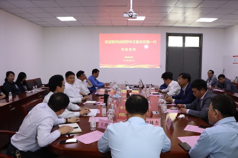 5月22日,胜利石油管理局有限公司党委常委、副总经理、东营市副市长舒华文一行来访公司,就加强胜利油田与学院新能源方向的全面合作进行深入交流,胜利油田首席高级专家倪承波、胜利油田电力公司经理刘玉林、胜利油田新能源开发中心经理李景营、胜利油田组织部赵庆伟主任,森诺科技董事长姜传胜、森诺科技人力资源部经理姜晓健,公司党委书记冯宝鹏、常务副经理吴明铂、副经理蒋文春、副经理康忠健,智林杰教授、王艳松教授以及新能源方向相关教师参与交流会。