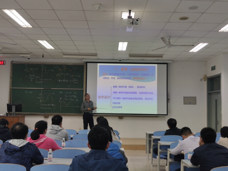 随后,崔学政教授从教学设计出发,详细分析了备课、教案讲稿撰写、课件制作等环节的注意事项,并展示展示了山东省、学校教学比赛的优秀案例。“从理论到实践是一个不断探索完善的过程。”崔学政教授鼓励青年教师增强教学信念,养成教学反思的好习惯,学习他人长处,反省自己不足,不断提升教学水平。