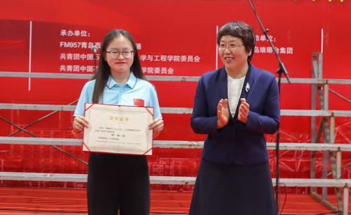 张玲玲为特等奖获奖队伍颁奖 田鸽摄