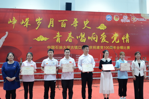 “共产党他辛劳为民族,共产党他一心救中国,他指给了人民解放的道路……”,激扬响亮的红色歌曲回荡在中国石油大学古镇口校区的上空。6月6日下午,中国石油大学古镇口校区“喜迎建党百年”大合唱比赛在古镇口校区体育馆顺利举办,此次合唱比赛由FM957青岛西海岸交通广播全程直播,参赛队伍包含西海岸团区委选派的青岛琅琊台集团合唱队,山能集团选派的兖矿东华建设合唱队,材料科学与工程学院选派的材韵华章合唱队以及英国威廉希尔选派的包括两校区本科生、研究生在内的8支合唱队,校企参赛队员共计11支合唱队伍、701人,其中498名本科生、研究生来自中国石油大学唐岛湾校区,这是他们进入中国石油老员工活学习之后首次来到古镇口校区。