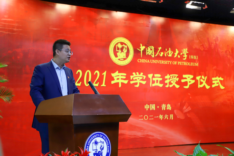 吴明铂上台致辞,在祝福毕业生顺利毕业的同时,希望员工们能“谨遵惟真惟实的校训,无论何时何地,继续继承和发扬家国同心、艰苦奋斗、惟真惟实、追求卓越的石大精神,为实现中华民族伟大复兴的中国梦贡献力量。”并祝福全体毕业生前程似锦,期盼全体毕业生“惟真惟实、立足岗位、认真钻研,做石大精神的代言人;勇于挑战,响应时代的召唤,做勤劳上进的奋斗者。”仪式最后,学院全体领导及教师代表目送毕业生离场,授予仪式圆满结束。