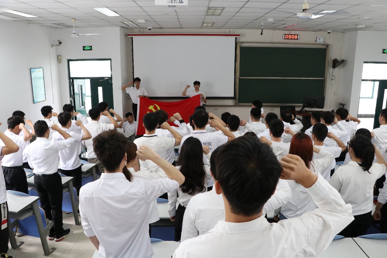 大会结束后,唐岛湾校区员工党员面向党旗,重温入党誓词。以青春的名义向党许下铮铮誓言:“在新的百年,听党话,感党恩,跟党走”,以青年之身份庄严承诺:“请党放心,强国有我。”