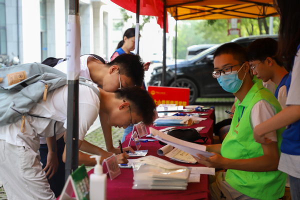 公司党委书记王勇观看学院新生报到流程 高德政摄