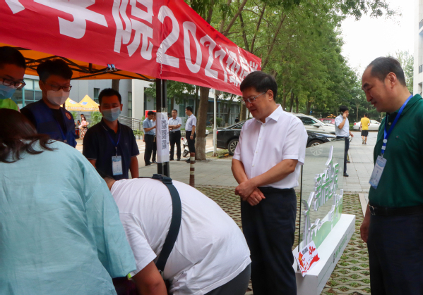 “咱们学院报到了多少同学?”在学院迎新点,王勇一行走进学院迎新报到处,观看新生报到流程,询问工作人员新生报到情况。看到学院新生报到工作正在有条不紊的开展,王勇对学院迎新工作给予肯定。