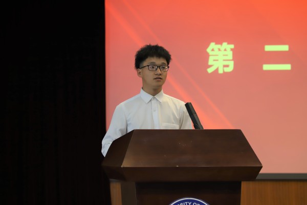 环保设备工程专业2019级本科生田东峰代表全体在校生发言,表示大学的一切都要从零开始,在各个方面都要脚踏实地,不断努力成为更好的自己。学院拥有浓厚的学习氛围、丰富的学术平台及众多科学竞赛机会,在这个优秀的平台,能够认识到许多优秀的教师与志同道合的朋友。