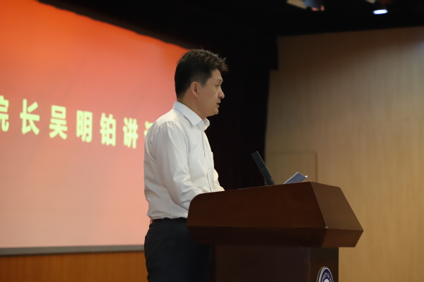 吴明铂代表学院对2021级新生的到来表示祝贺,指出在建党100周年的新阶段,大家有了新的身份、责任和使命。他勉励新生要承担起责任与使命,并提出三点希望:一是要抱定宗旨,坚定爱国信念,做新时代的石大人;二是要博学慎思、坚毅执着,面向时代课题;三是要要涵育品行、强健体魄,学以成人。最后,吴明铂对21级新生送上祝福,希望大家圆梦石大,开启人生新篇章。