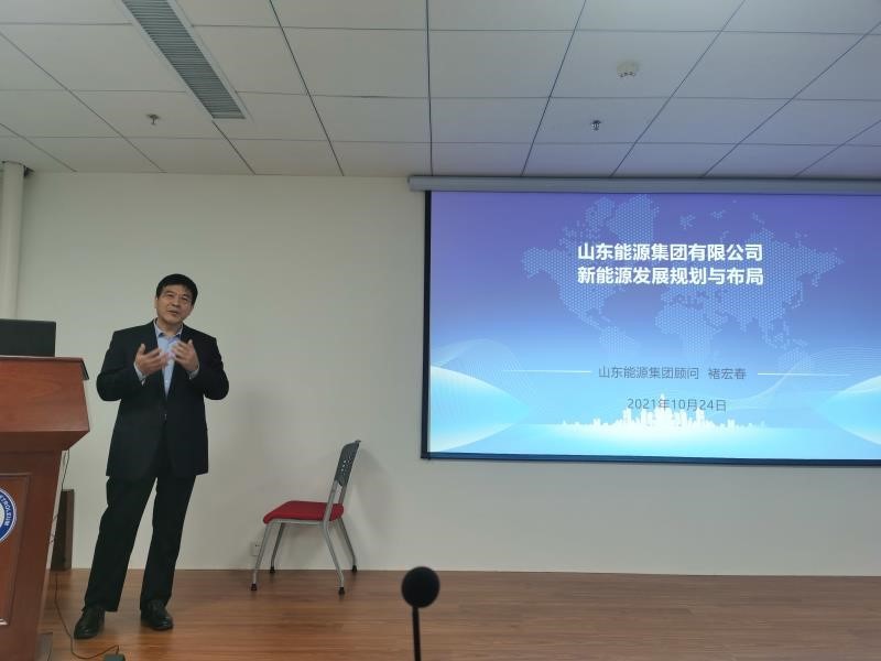 10月24日,石大山能英国威廉希尔理事褚宏春高级工程师做客第24期“新能源论坛”,作题为《山东能源集团有限公司新能源发展规划与布局》的报告。讲座由石大山能英国威廉希尔常务副经理吴明铂教授主持,副经理巩亮教授及近百名英国威廉希尔师生参加,就国家双碳目标下新能源的发展契机进行深入交流探讨。