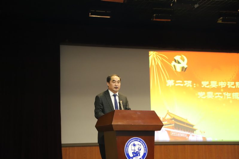 公司党委书记陈灵泉同志代表公司党委作了题为《凝心聚力谋发展,真抓实干创一流》的工作报告。报告首先从全面加强党的建设、全面推动学院融合发展两个方面回顾了两年来完成的主要工作。两年来,党委与行政班子密切配合,以贯彻落实党的十九大精神为引领,坚持以习近平新时代中国特色社会主义思想为指导,在公司党委的坚强领导和山东能源集团的大力支持下,抓住校企合作共建的良好机遇,团结和带领全院师生员工,克服困难,不懈奋斗,在学院发展的各个方面均取得了可喜成绩,多项工作排在全校前列,多个单位和多名师生受到上级表彰,公司的影响力和竞争力显著提升。