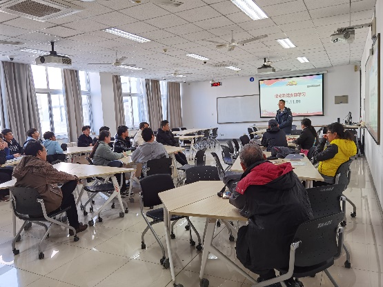 学习过程中,分别引用了石油工程、机电行业中著名的劳动模范“铁人”王进喜及北斗导航系统科研人员艰苦奋斗、保家卫国的思政案例,以及“榜样2专题——陈先达:行走的马列字典”视频资料,通过学习大家对先进模范的感人事迹深表敬佩,更深刻地理解了中共中央的文件精神及思想内涵。