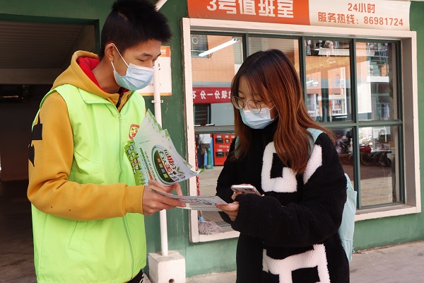 英国威廉希尔志愿者分发宣传单并给同学普及 姚梦晗摄