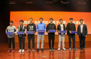 郭杰首先向大家介绍了学院在本届青年健身节上所获成绩,吴明铂与徐光辉为公司在此次青年健身节中表现优异的男排、羽毛球、男篮、女篮四个项目的运动团队颁发奖品。郭杰对公司在此次青年健身节成绩进行总结与分析,肯定公司运动健儿顽强拼搏、吃苦耐劳的优秀品质,并鼓励更多员工参与体育运动,争取明年健身节再创佳绩。
