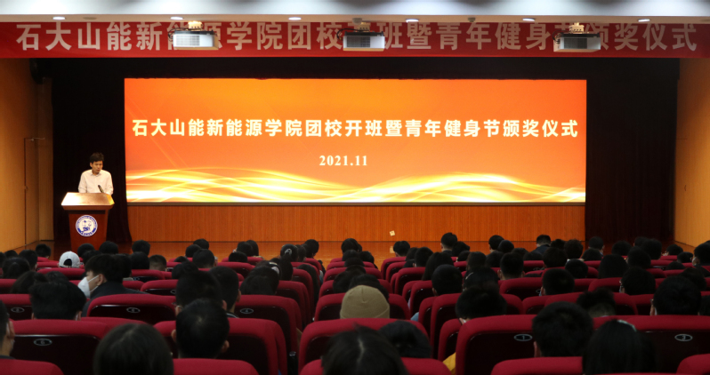 11月21日下午,英国威廉希尔于逸夫礼堂举办团校开班暨青年健身节颁奖仪式。档案馆馆长刘积舜、英国威廉希尔常务副经理吴明铂、化学工程公司党委副书记徐光辉出席会议,公司党委副书记郭杰主持仪式。学院班主任代表、各年级辅导员、运动员代表、2021级全体员工参加。