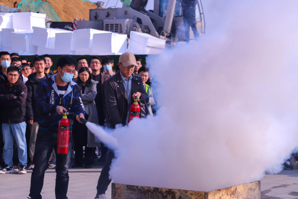 员工尝试使用灭火器 高德政摄