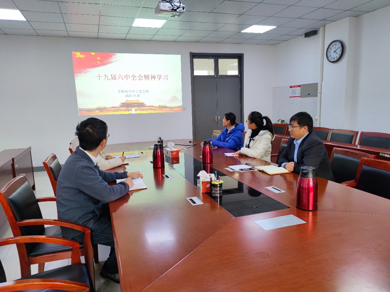 11月30日,实验中心党支部在特种楼C433会议室召开支部大会,学习党的十九届六中全会精神,党支部书记王丽飞主持会议。
