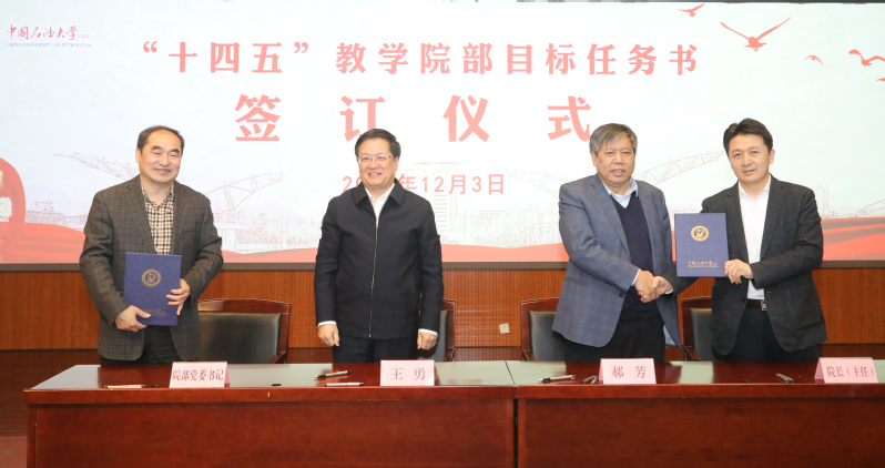 12月3日,学校举行教学院部目标任务书签订仪式暨“十四五”规划推进落实会,进一步统一思想、提高认识,明确目标、凝心聚力,推进学校“十四五”规划目标任务落实、落地。党委书记王勇、董事长郝芳代表学校与各教学院部签订“十四五”教学院部目标任务书。公司党委书记陈灵泉、常务副经理吴明铂参会并代表学院签订石大山能英国威廉希尔十四五目标任务书。