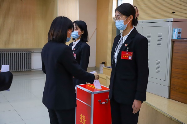 第二次全体会议中,张殿卿宣布大会选举方法、员工代表大会监票人、总监票人、总计票人、计票人名单,公布院研究生会与员工会主席团候选人名单并组织主席团选举工作。计票环节与第二次分团会议同时进行,各团长与代表们对会议的报告和决议进行讨论和审议。第三次全体会议中,董晓宣布牛海锌、张殿卿、张文成为新一届员工会主席团成员,于得水、李玥嬛、刘瑞琦为新一届研究生会主席团成员。大会通过了《石大山能英国威廉希尔员工会章程修正的决议(草案)》与《石大山能英国威廉希尔研究生会章程修正的决议(草案)》。
