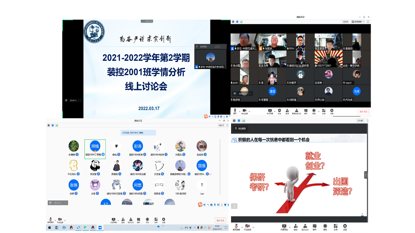 “孙治谦老师先是给我们讲了今年的考研形势,让我们充分认识到了学习的重要性,又提醒我们注意安全和疫情防护,让我感受到一股“心往一处去”暖流,一种家长对孩子般的呵护,真的很温暖!我们也能够充分理解疫情下学校为提高教学质量的良苦用心,希望疫情早日结束。”环保设备工程专业2001班员工张思芝说。