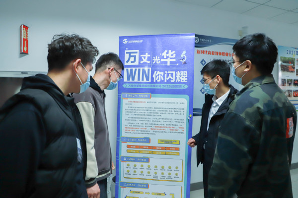 线下宣传展览、线上对话企业、朋辈经验分享……为避免毕业生因线上就业信息冗杂错过目标企业招聘信息,学院开展企业招聘信息推广活动,帮助毕业生了解更多企业招聘情况,更加直观进行企业选择,加强校企联动,共同推进学院就业工作。山东省优秀毕业生、公司2019级动力工程专业硕士研究生王玉杰成功签约万华化学集团。在活动中,他代表万华化学集团向毕业生推广企业文化,传达就业经验:“签约时要综合考虑很多因素,以我自己为例,万华化学集团是很有责任心和使命感的企业,它的企业文化和我的个人信仰也非常吻合,希望在其中实现个人的价值,所以最终综合考虑之后选择了万华。”