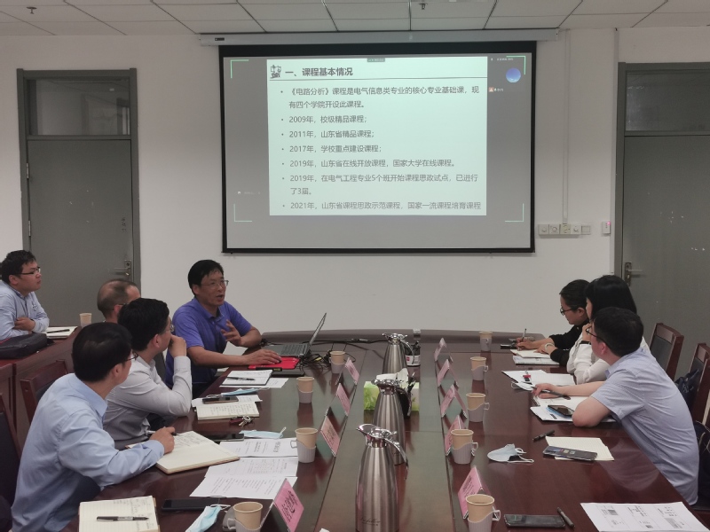 研讨会上,马文忠、周凡分别分享了《电路分析》和《过程设备设计》课程思政建设的经验和体会。他们分别从课程思政元素构建、教案设计、讲授方法、课程思政目的等方面分享了课程思政案例及体会,引起了与会人员的广泛共鸣。公司承担的《电路分析》和《过程设备设计》于2021年入选山东省课程思政示范建设项目。