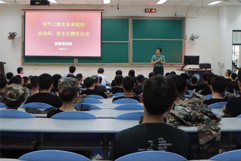 为更好地推进学院卓越班建设,提高人才培养水平,7月1日下午,学院于讲堂群东环201举办2021级电气工程及其自动化卓越班班导师、班主任聘任仪式。学校信息化建设处处长郝志杰,党委办公室、董事长办公室副主任朱华,公司常务副经理吴明铂、党委副书记郭杰、专业带头人马文忠,辅导员和全体电气21级员工参加聘任仪式,聘任仪式由电气工程系主任赵仁德主持。