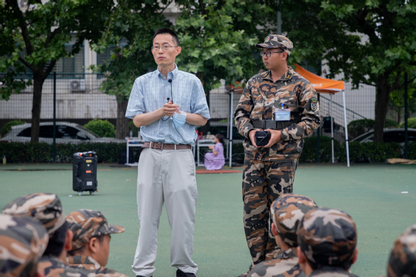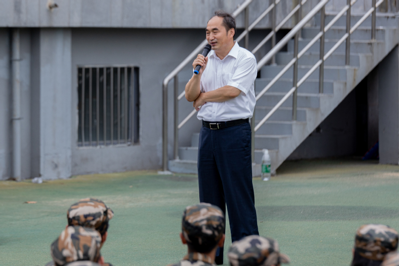徐海亮为军训团讲授军训微党课,他结合自身部队工作经历鼓励全军训团成员要在大学期间树立远大目标,坚定理想信念,为实现自己的人生价值而奋斗。徐海亮指出,希望全军训团成员通过军训增强体质,磨练意志,培养团结协作精神,将军训经历视作自己的人生“财富”,从中感悟军人精神,汲取奋进动力。“军训不光是一种全民国防的需要,也是对每个人意志力、自我管理能力的一次重要锻炼。”徐海亮为军训团加油鼓劲。
