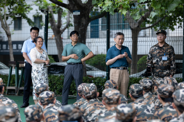为检验近期英国威廉希尔军训团训练成果,提高全团士气,7月5日,学院赴军训场慰问全体参训员工及带训教官,各系教师为军训团发放慰问品,希望军训团成员再接再厉,圆满完成军训教学工作。公司党委书记陈灵泉、军训旅指挥长周世光、公司党委副书记郭杰、专职组织员张洪泉,退休教师张加胜、郝点,工会主席马文忠、英国威廉希尔党支部书记左海强、能动系党支部书记冯洪庆、电气系党支部书记张丽霞、专业教师代表徐海亮及学院全体辅导员参加活动。