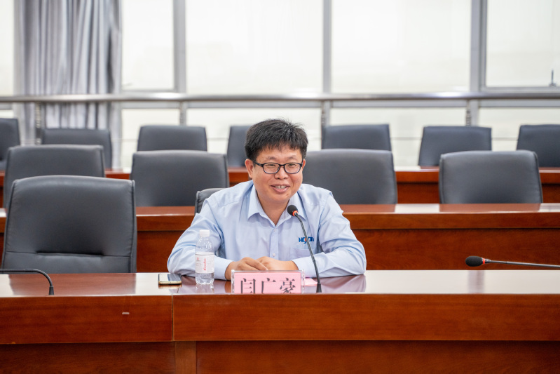 闫广豪感恩母校七年的培育,并介绍上海浩用工业炉有限公司的基本情况,表示公司近年来以节能减排、低碳环保为主线,围绕加热炉相关项目,加以智能化方案,服务国家“双碳”战略。闫广豪指出,希望通过此次合作,构建和母校合作的“桥梁”,促进产学融合,培育高质量人才,共同促进行业发展。