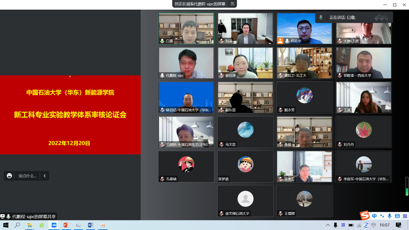 近日,为科学制定新能源科学与工程、储能科学与工程两个新工科专业的实验教学体系,有效提升专业人才培养质量,按照教务处与实验管理处统一要求,学院组织有关专家对两个新工科专业实验教学体系进行了论证。会议邀请了浙江大学俞自涛教授、西南大学郭胜锋教授、北京工业大学鹿院卫教授、西南石油大学李星教授、中国大唐集团绿色低碳发展公司王虎教授级高工、山东能源集团新能源研发创新中心刘涛高工等11位专家参加此次论证。学院常务副经理吴明铂,副经理赵东亚、仉志华,以及两个新工科专业的专业带头人、专业负责人和骨干教师等参加会议,仉志华主持论证会。